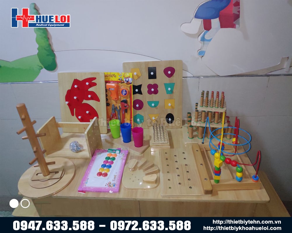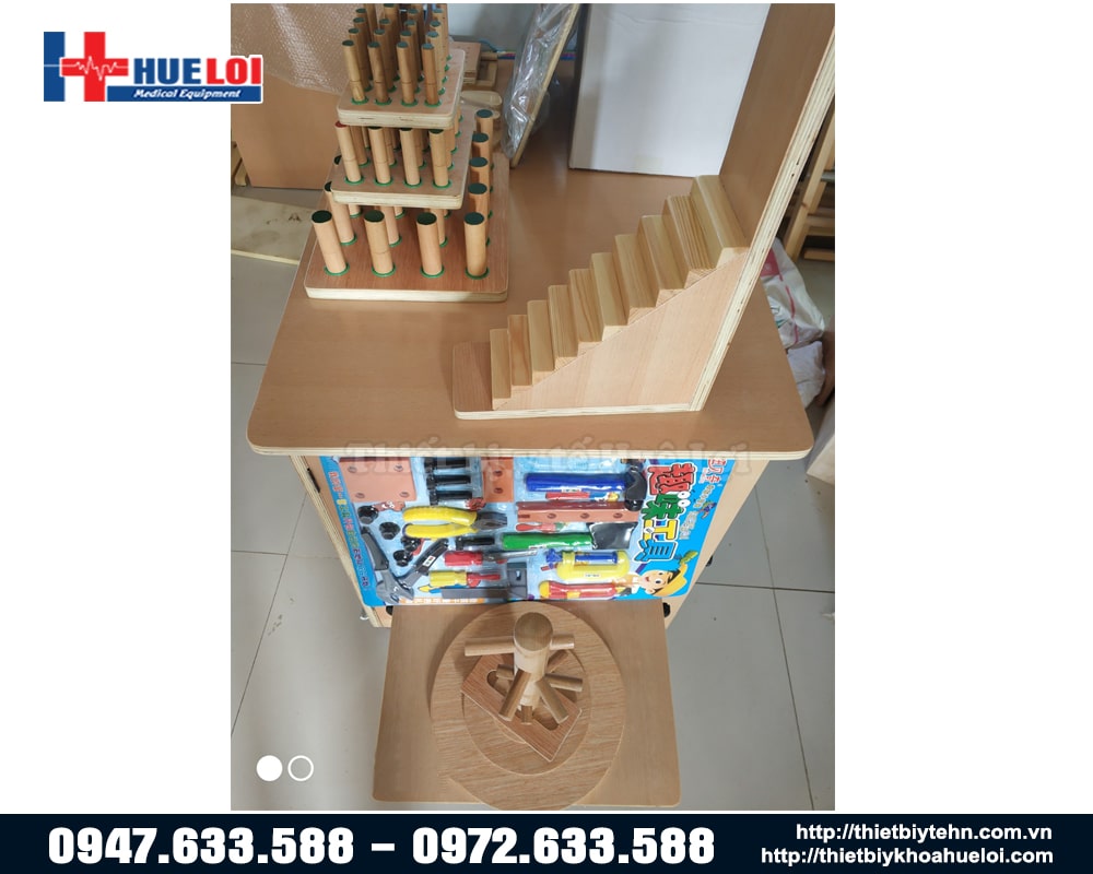 Bộ bàn tập có đầy đủ các dụng cụ phục hồi chức năng bàn tay, tập linh hoạt ngón tay, tập phối hợp các giác quan và khả năng nhận thức cho người tai biến mạch máu não.
