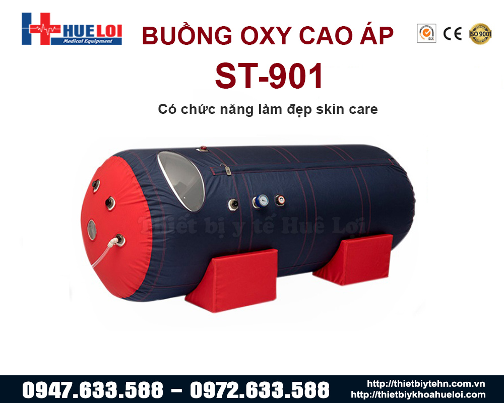 - An toàn: Áp suất 1.3 Atm là áp suất nằm trong ngưỡng an toàn (Ngưỡng an toàn: <3atm, ngưỡng an toàn tuyệt đối: 1-2atm); ngoài ra ST-901 còn sở hữu hệ thống van an toàn và van tự động thông minh, giúp đảm bảo an toàn trong quá trình trị liệu.