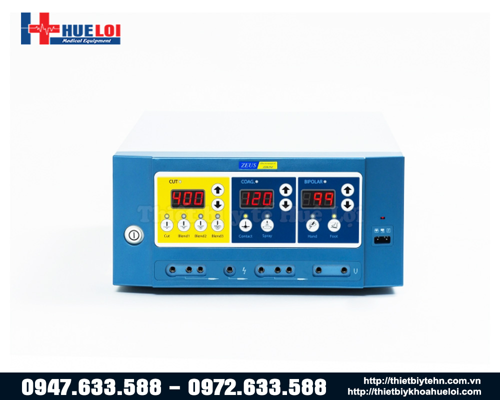 Dao mổ điện Zeus 400 có xuất xứ từ Hàn Quốc là dòng dao mổ điện cao tần nhiệt, có công suất cắt đốt 400W. Đây là dòng dao dùng để cho cắt đốt thẩm mỹ, cắt đốt họng, cắt đốt phụ khoa, nha khoa, ngoại khoa... Đây là dòng máy đốt điện được nhiều bác sỹ tin tưởng và lựa chọn.