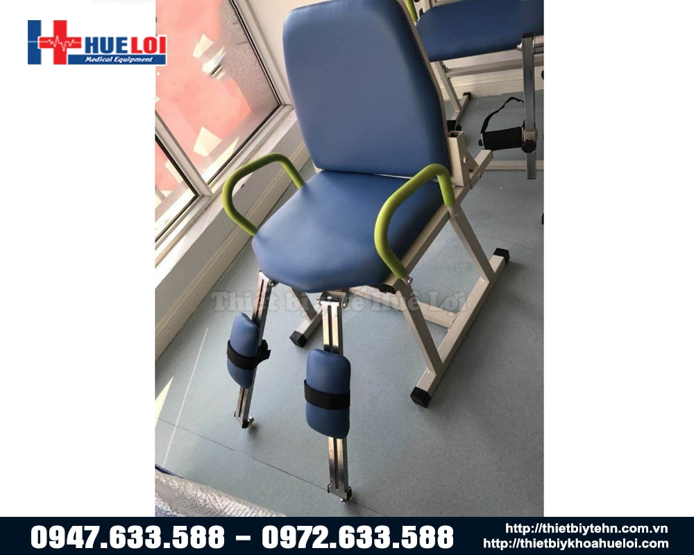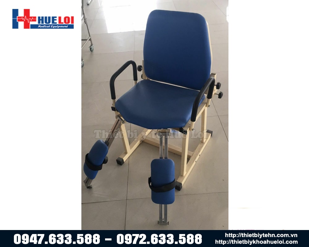Ghế tập phục hồi chức năng khớp háng cho trẻ em và người lớn (có 2 kích thước khác nhau). Thiết bị giúp tập luyện các động tác vận động khớp háng (dạng - khép - xoay trong/xoay ngoài) thông qua hệ thống bánh xe di chuyển trơn tru.