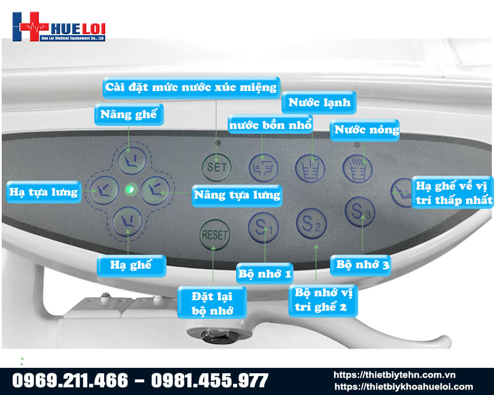 - 03 chức năng bộ nhớ hoàn toàn tự động, giúp bác sĩ dễ dàng đặt các yêu cầu về ghế điều trị cho các hoạt động khác nhau