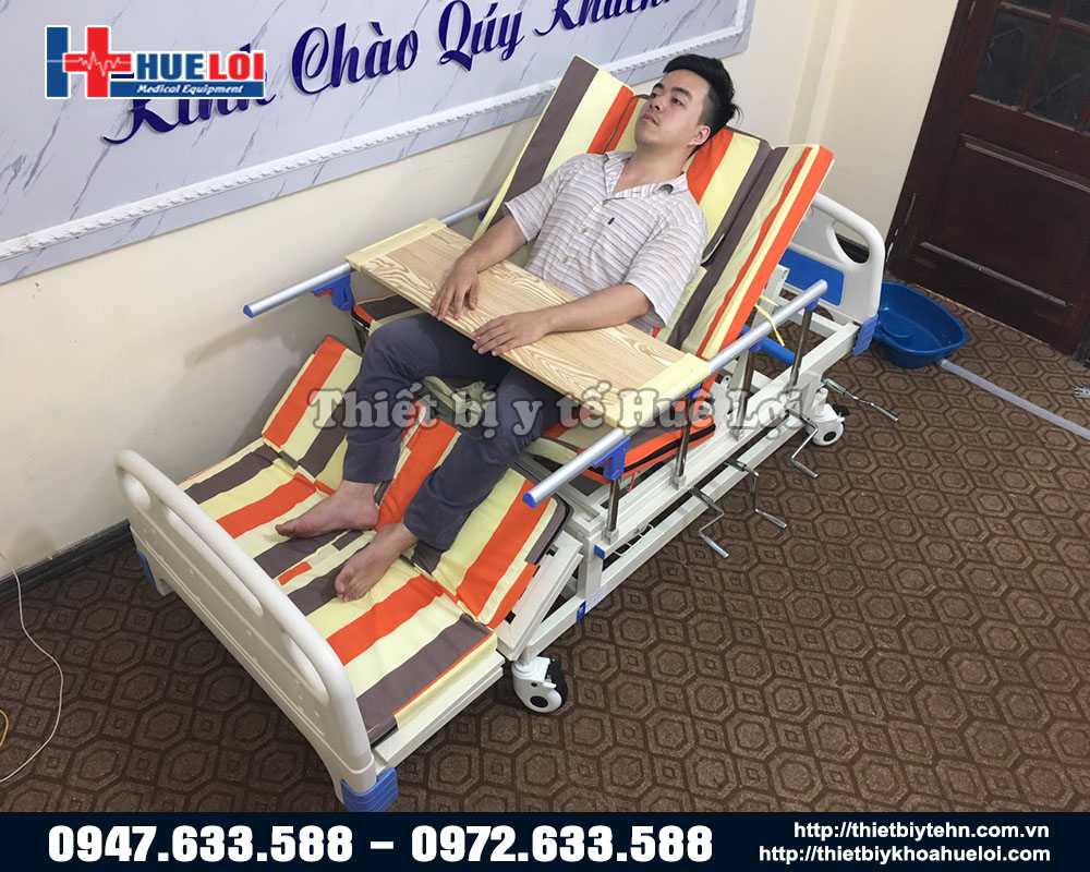 - Ngoài ra giường còn có chức năng nâng hạ bô vệ sinh một cách đơn giản, giúp bệnh nhân đi vệ sinh 1 cách dễ dàng với cả tư thế ngồi và tư thế nằm.