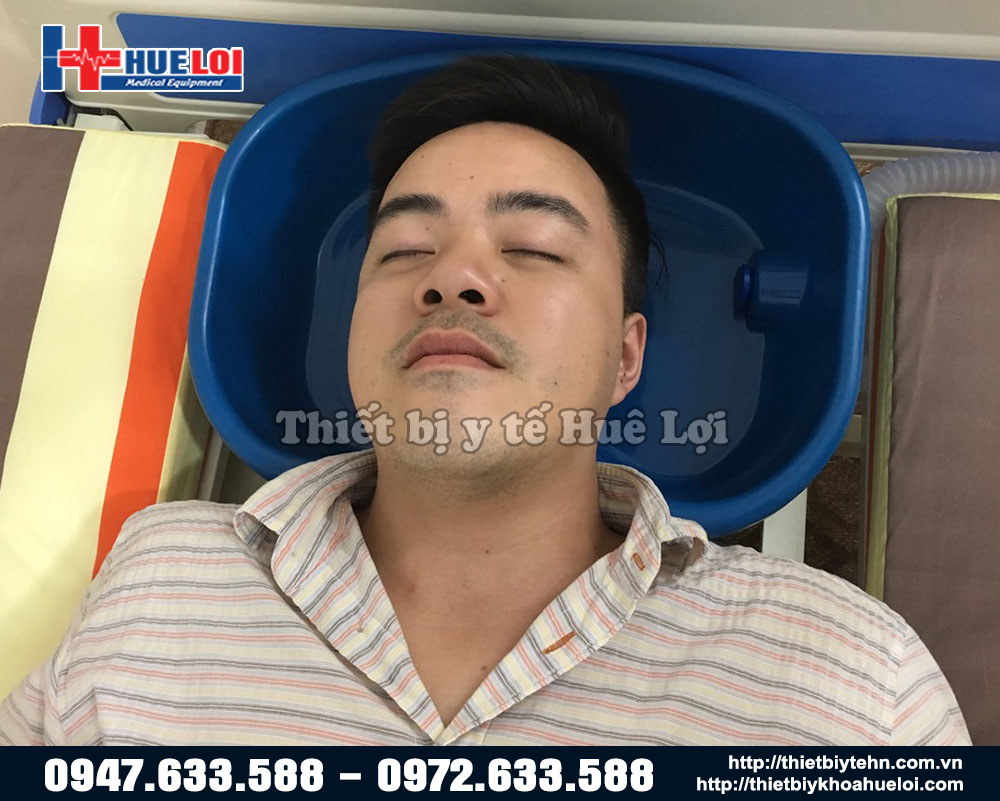 - Chậu gội đầu được thiết kế ngay tại giường, chỉ cần tháo phần gối đầu và để chậu vào là người nhà có thể gội đầu, vệ sinh cho bệnh nhân ngay tại giường
