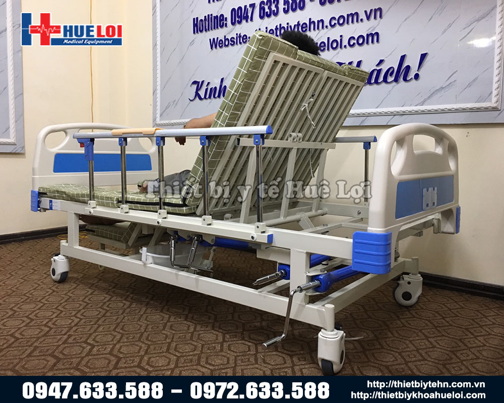Đây là mẫu giường y tế tay quay với đầy đủ chức năng, ngoài ra, quý khách hàng có thể tham khảo mẫu giường y tế điều khiển điện để tiện lợi hơn, không mất thời gian và công sức để quay tay quay tại đây!
