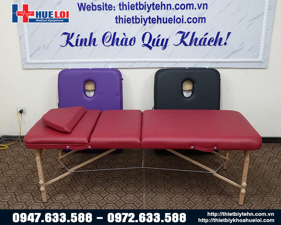 Ngoài ra, Công ty Thiết bị y tế Huê Lợi còn cung cấp mẫu giường châm cứu bấm huyệt dạng vali chân hợp kim và các mẫu giường massage trị liệu khác quý khách hàng có ể tham khảo tại đây!