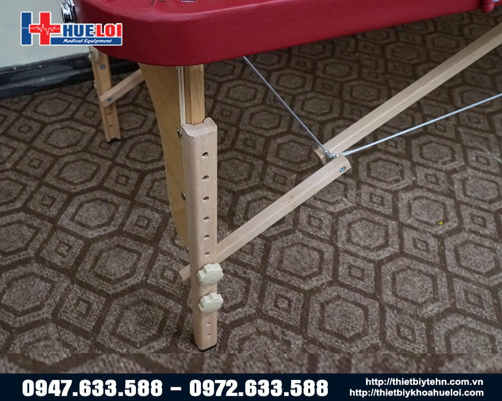 Giường châm cứu bấm huyệt vali cao cấp, chân giường được làm từ gỗ tự nhiên, chất liệu chắc chắn thân thiện với môi trường, giường có thể gấp gọn như một chiếc vali, không chiếm nhiều diện tích trong căn phòng và dễ dàng di chuyển đi bất cứ đâu.