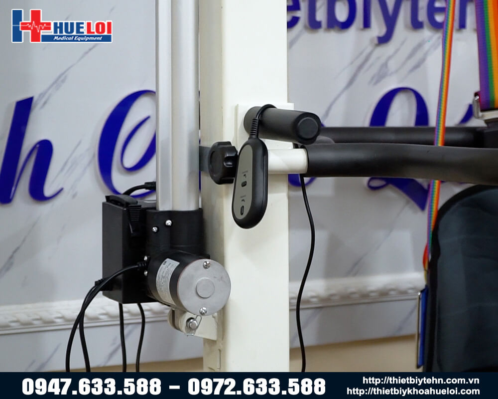 - Điều chỉnh chiều cao thông qua điều khiển để người bệnh đứng hoàn toàn trên đôi chân của mình.