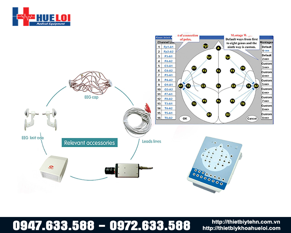 - Phương pháp ghi 10/20 vị trí điện cực theo hệ thống tiêu chuẩn quốc tế, các dây dẫn có thể được thay đổi trong quá trình phát lại. Hỗ trợ các loại đạo trình kết hợp khác nhau trong quá trình lấy mẫu.