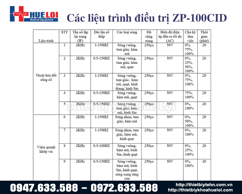 Máy điện xung trung tần ZP-100 CID: thông số kỹ thuật