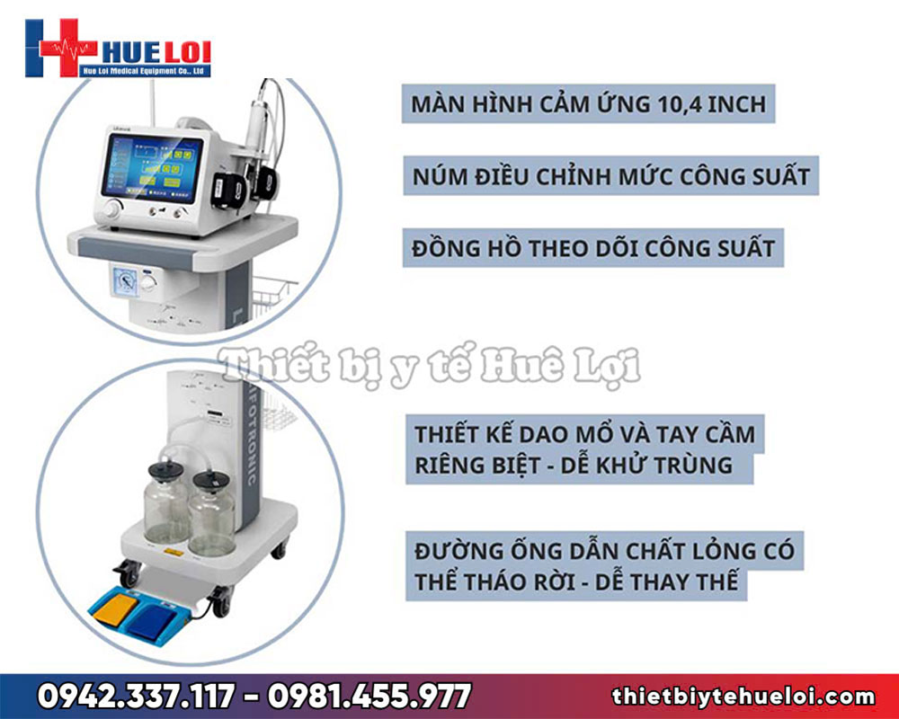 - Tích hợp hệ thống xả áp suất cao bằng dung dịch muối sinh lý để rửa sạch vết thương và tăng khả năng truyền dẫn sóng siêu âm.