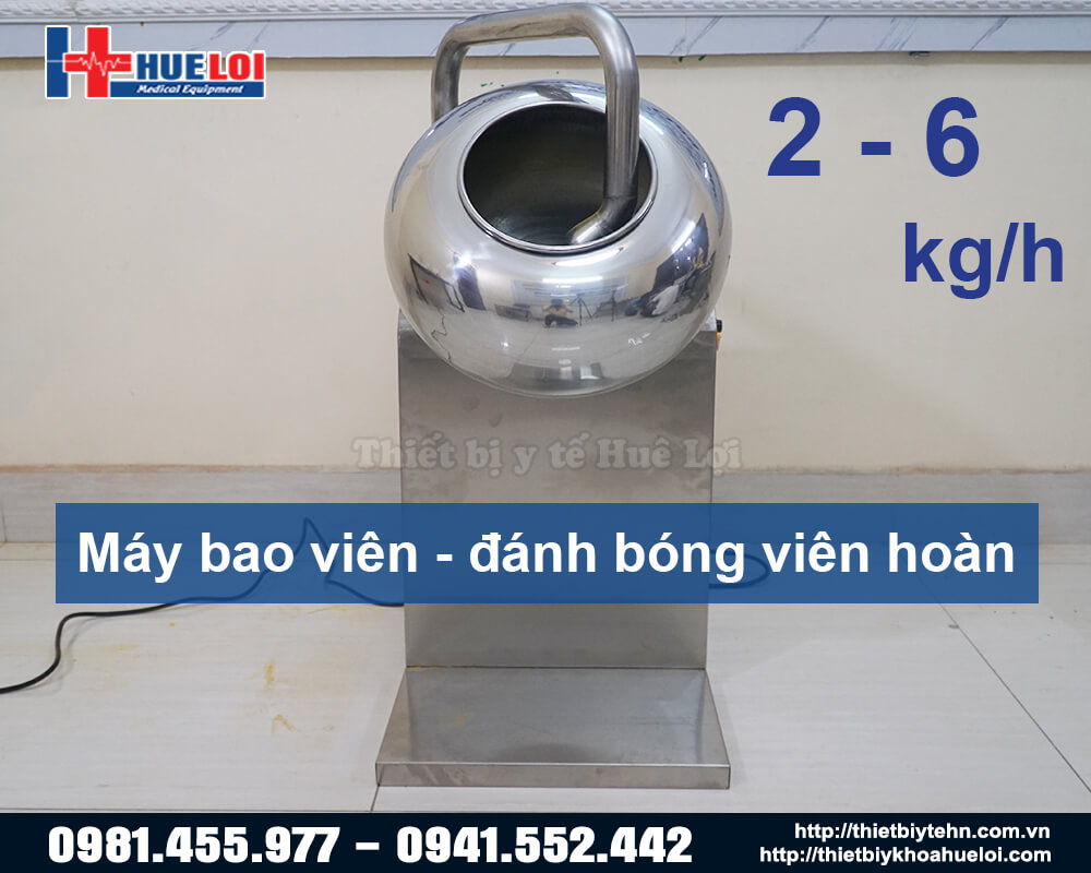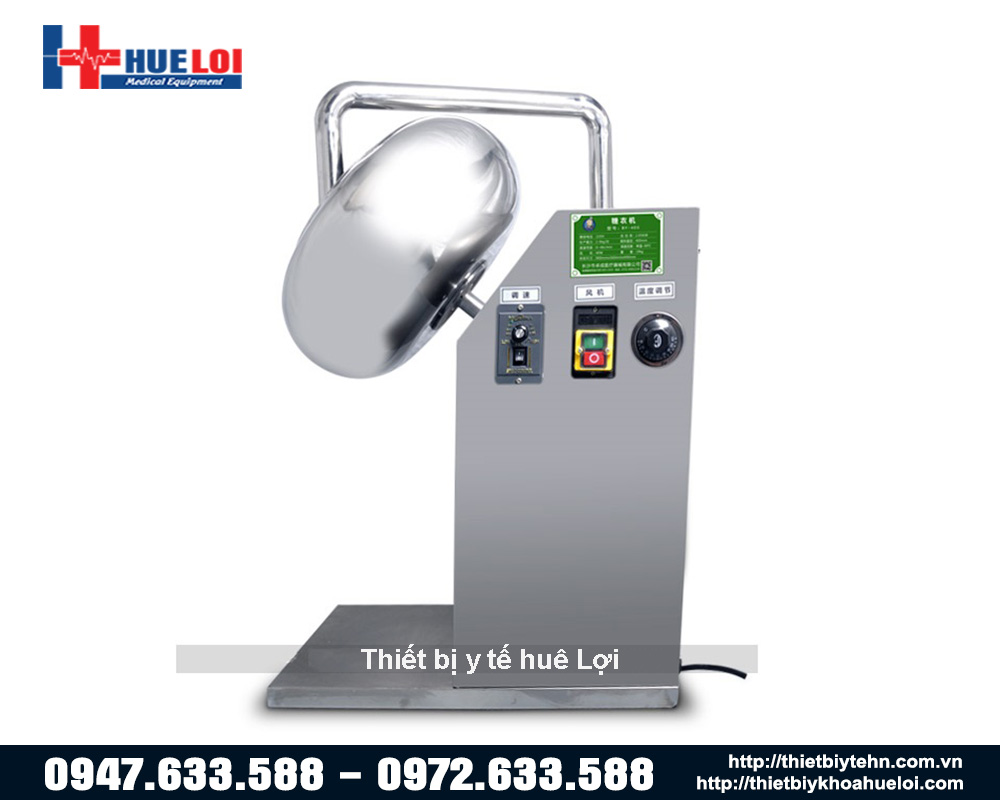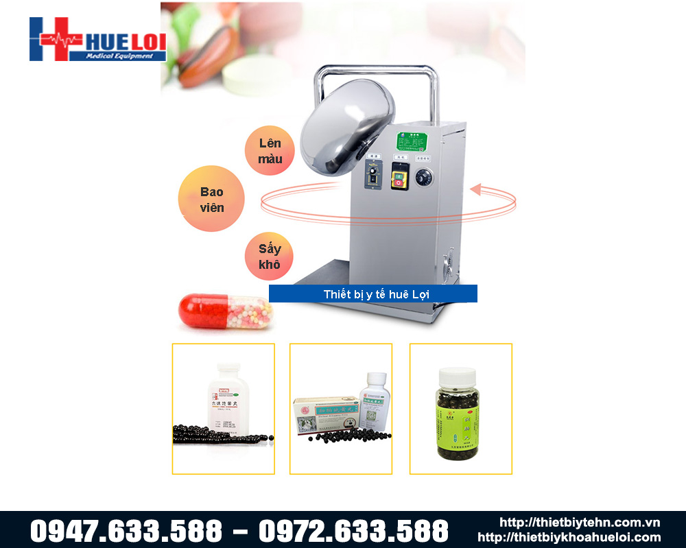 Máy sấy khô, bao viên và đánh bóng thuốc viên hoàn trong đông y, giúp cho viên hoàn tròn trịa và có màu sắc đẹp hơn, khô ráo bảo quản được lâu và đặc biệt là các viên không bị dính vào nhau.
