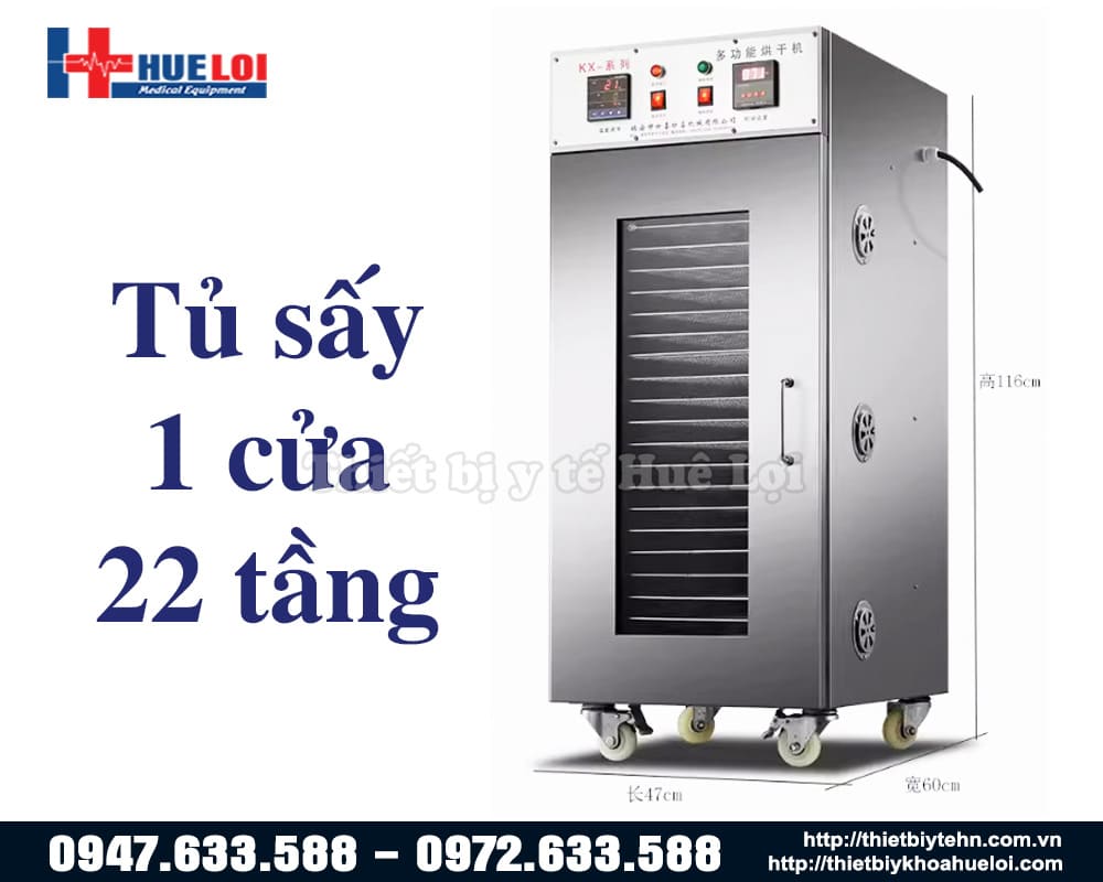 Máy sấy thuốc đông y đa năng 22 tầng với thiết kế hiện đại có 22 tầng sấy cùng hệ thống điều nhiệt thông minh giúp tăng phạm vi gia nhiệt và phân bổ nhiệt đều hơn. Sản phẩm thích hợp sử dụng trong các khoa bào chế đông dược của các bệnh viện hoặc phòng khám Y học cổ truyền,sấy hoa quả ,các loại trà,...