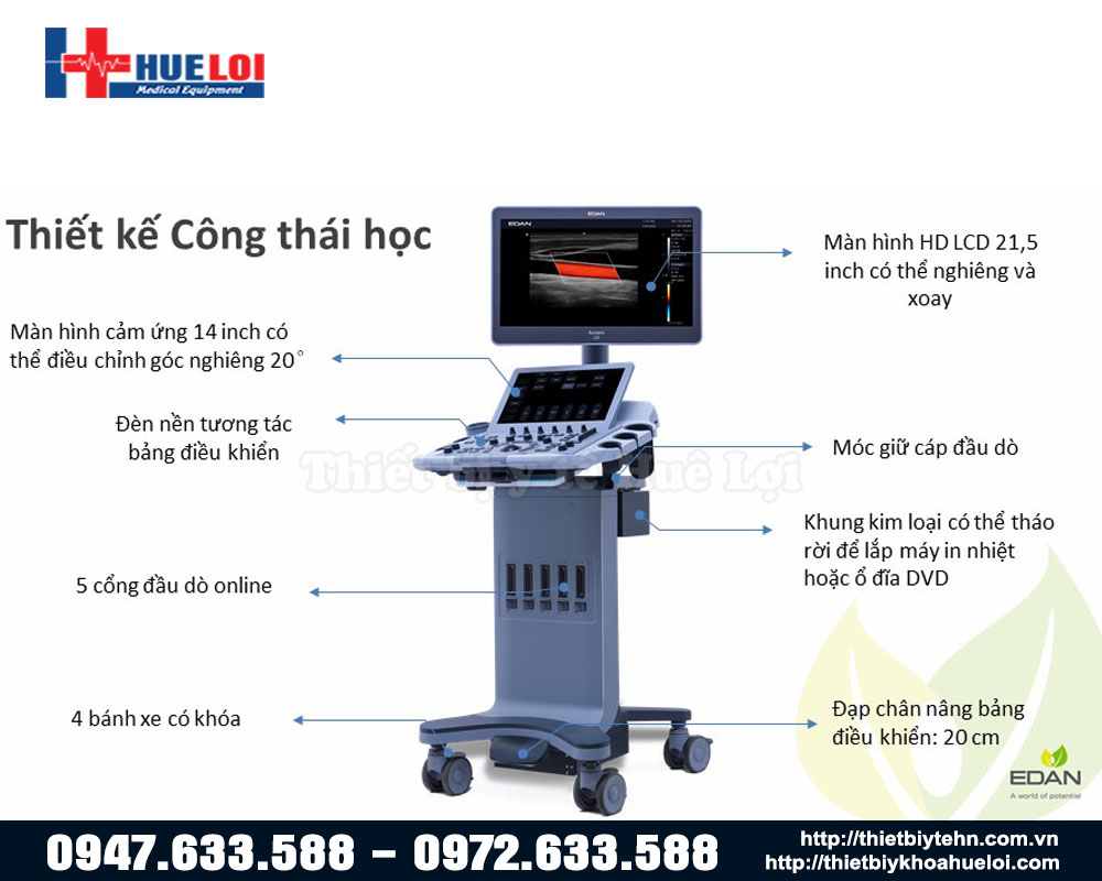 - EDAN là công ty toàn cầu được thành lập từ năm 1995 và đã có kinh nghiệm nhiều năm trong việc phát triển các hệ thống máy siêu âm, các công nghệ được đổi mới và phát triển liên tục. Máy siêu âm EDAN được tin dùng ở khắp nơi trên thế giới, đặc biệt là Châu Mỹ, Châu Âu - 2 thị trường có những yêu cầu rất khắt khe về thiết bị chăm sóc sức khỏe.