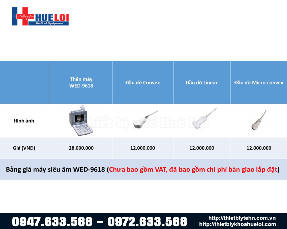 Máy siêu âm di động giá rẻ WED-9618: thông số kỹ thuật
