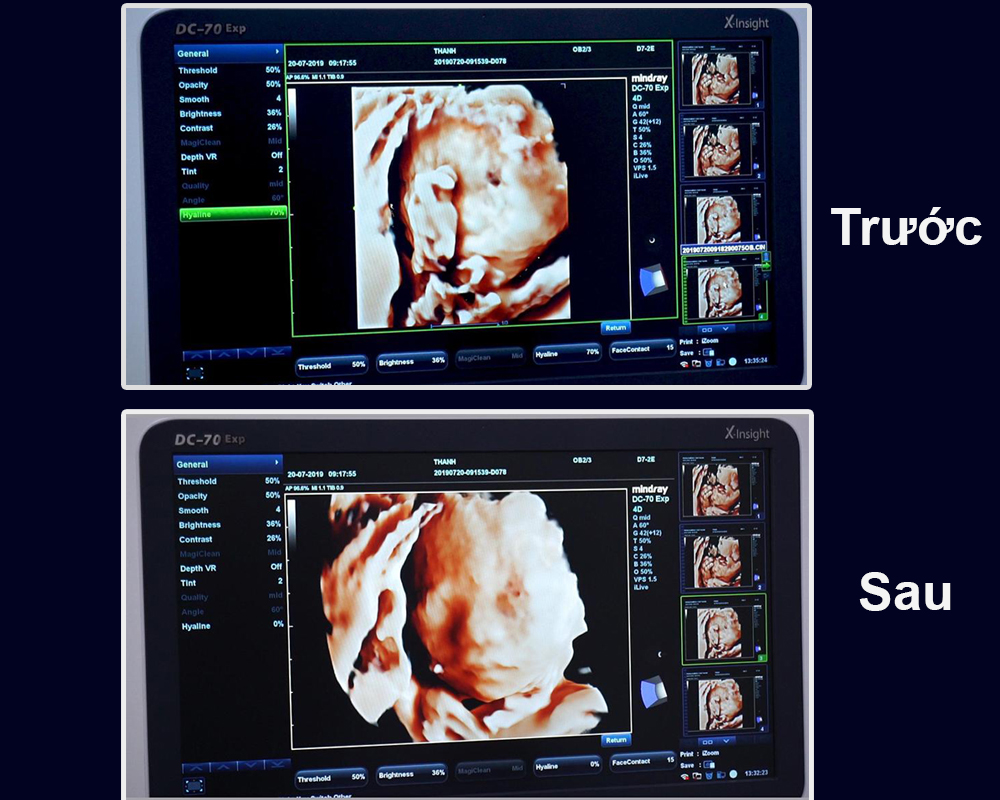 Chỉ với 1 chạm, các vật cản như dây rốn, tay, chân che trước mặt thai nhi sẽ được loại bỏ