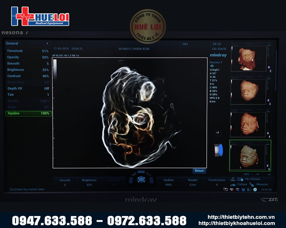 - Ưu điểm: Mindray Resona 7 thuộc dòng máy cao cấp của Mindray, các tính năng cũng như chất lượng hình ảnh của Resona 7 xứng đáng với tên gọi: "Máy siêu âm cao cấp"