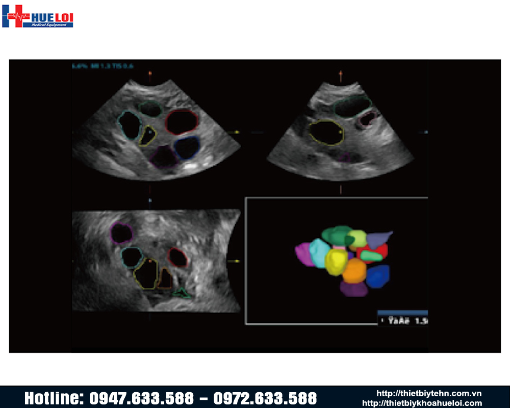 Tự động phát hiện số lượng và tính toán kích thước nang từ hình ảnh siêu âm 3D.