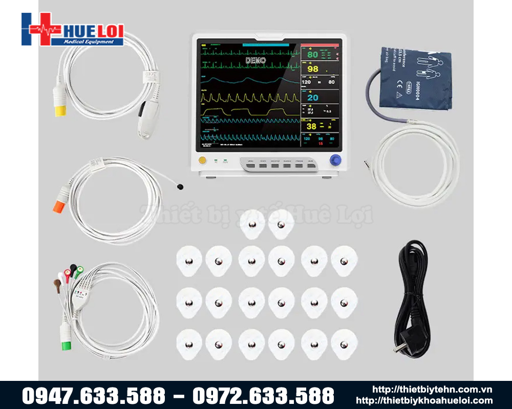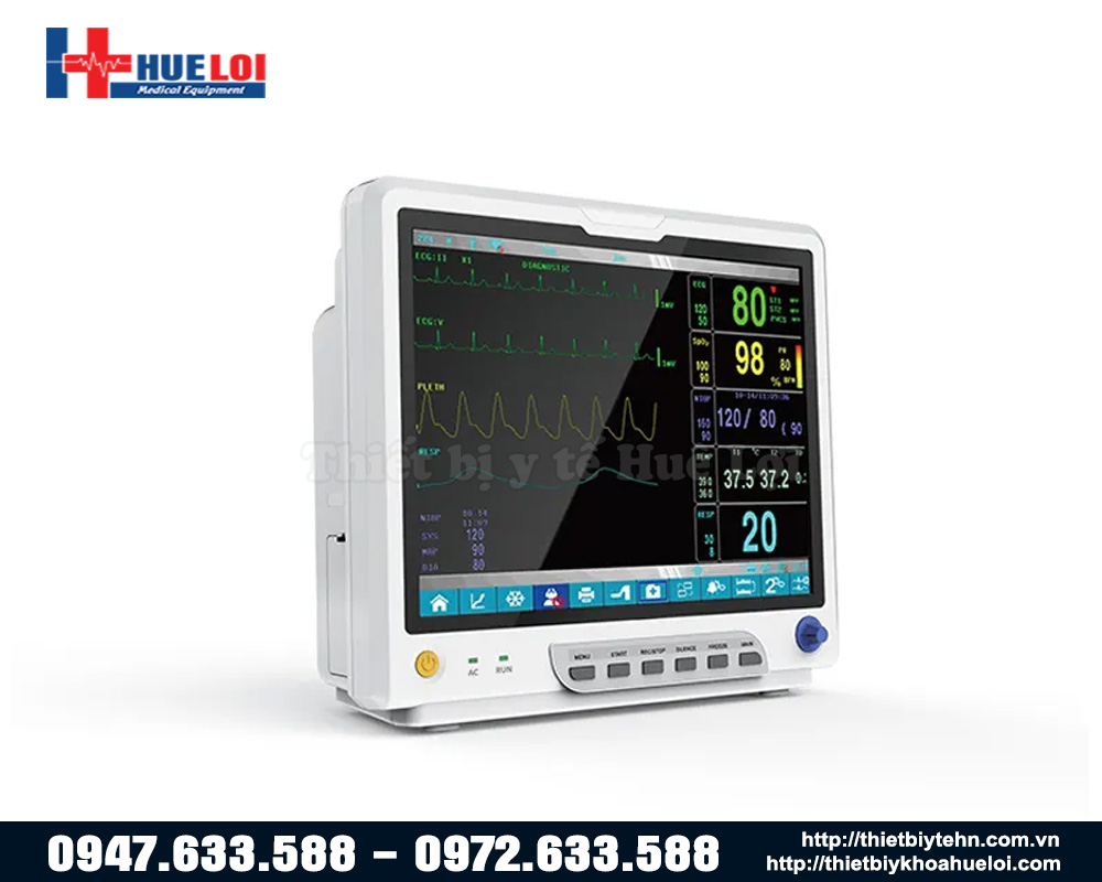 Các thông số tiêu chuẩn: ECG, RESP, SpO2, PR, NIBP, TEMP hai kênh