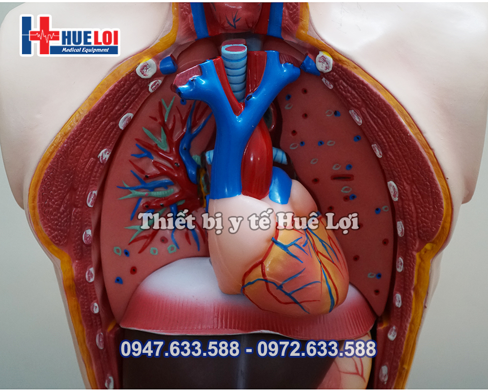 - Ngoài các cơ quan nội tạng, mô hình còn thể hiện rất rõ ràng, chi tiết đường đi của các mạch máu của cơ thể.