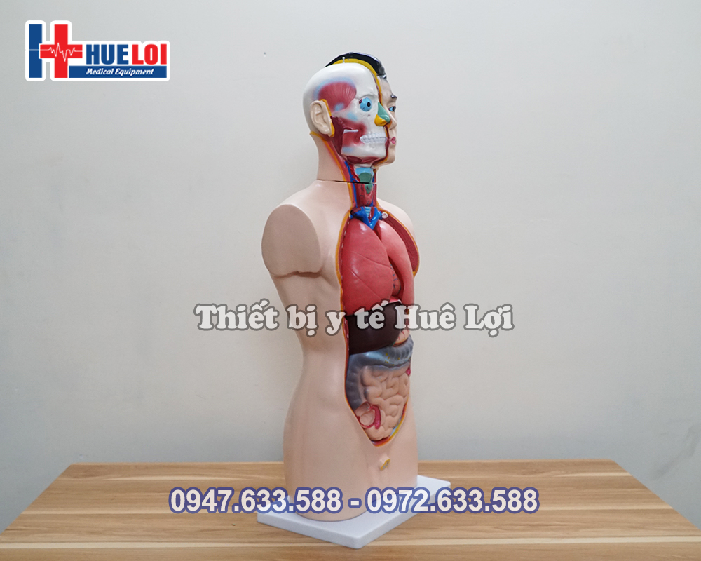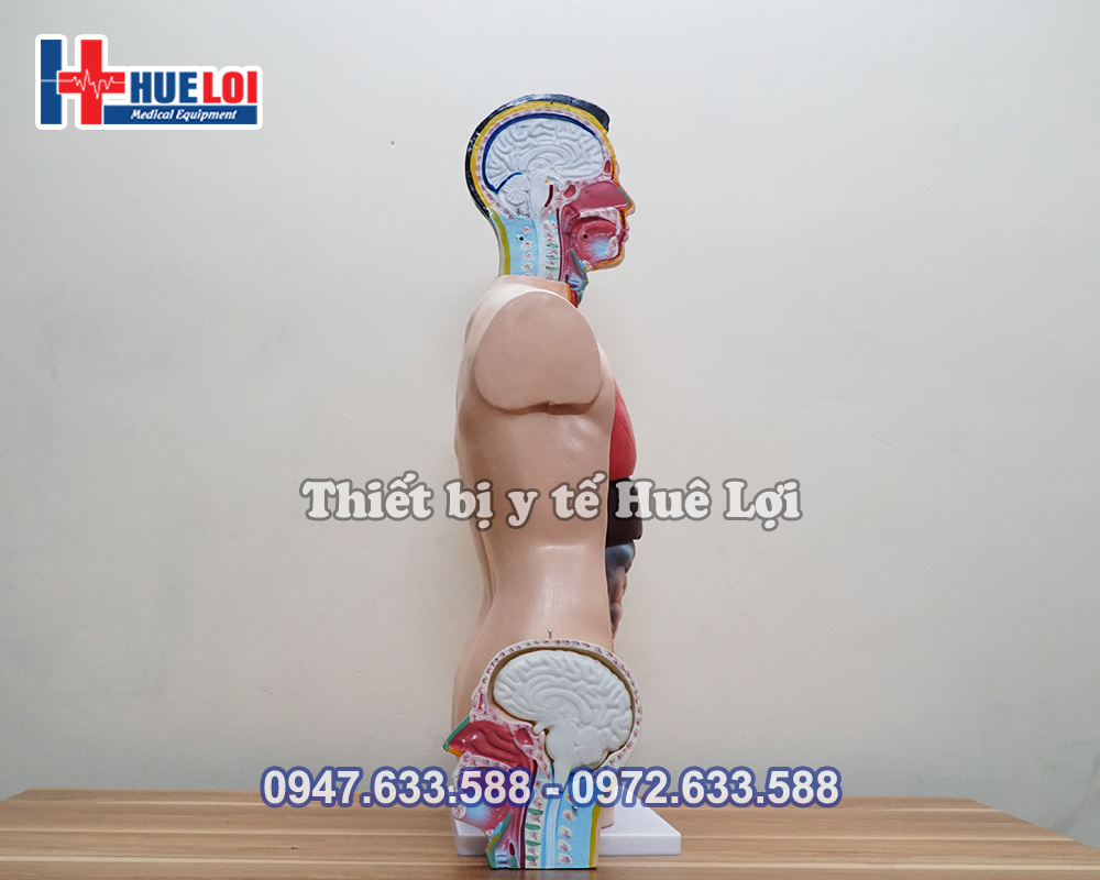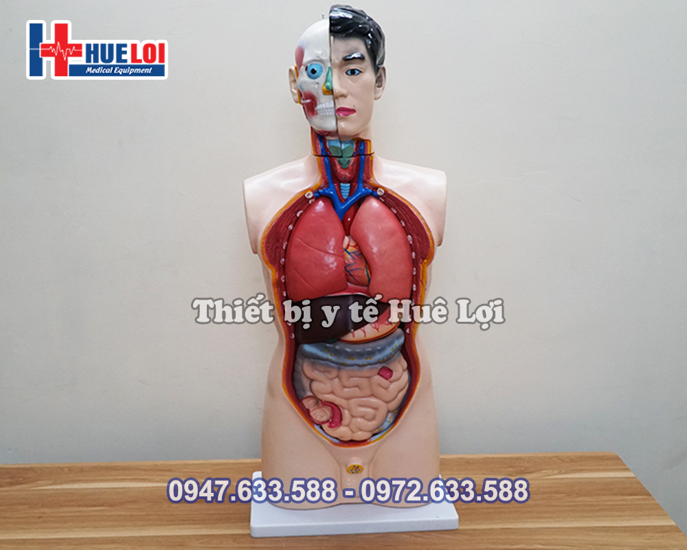 - Mô hình thể hiện nửa thân trên của cơ thể người, từ đầu đến hết bộ phận sinh dục nam giới.