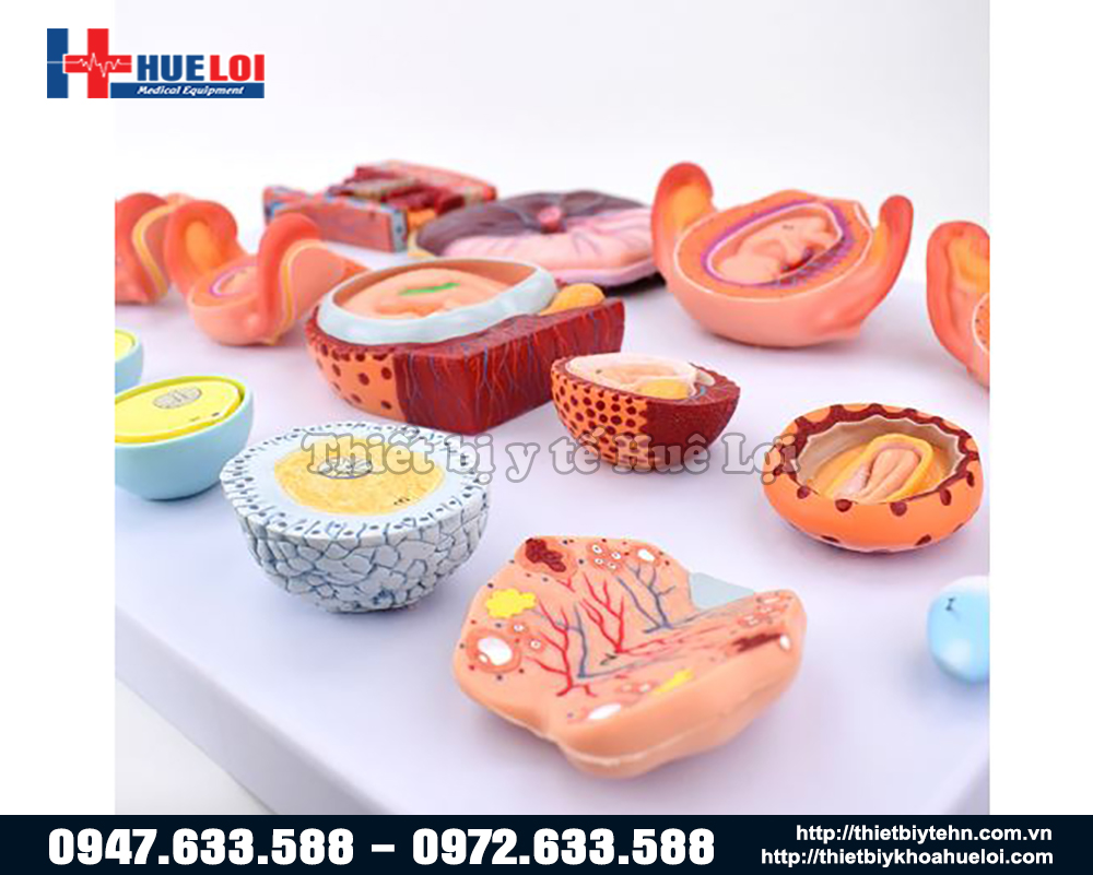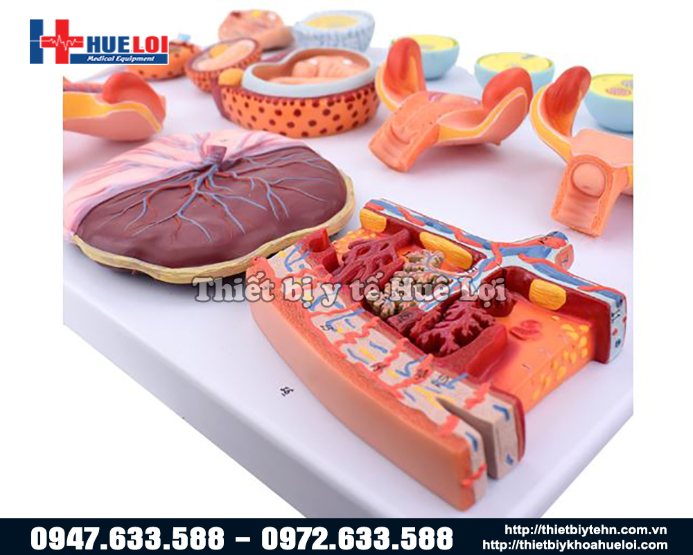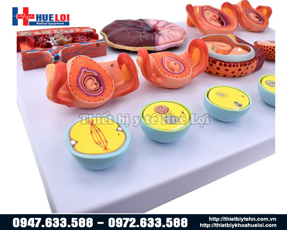- Mô hình bao gồm 16 thành phần bao gồm tinh trùng, buồng trứng, trứng, sự phát triển của trứng được thụ tinh, phôi nang, phôi thai 2-9 tuần, thai nhi và nhau thai vào tháng 3, và cho thấy phôi thai của con người từ sự phát triển của tế bào trứng đến sự hình thành của thai nhi 3 tháng tuổi.