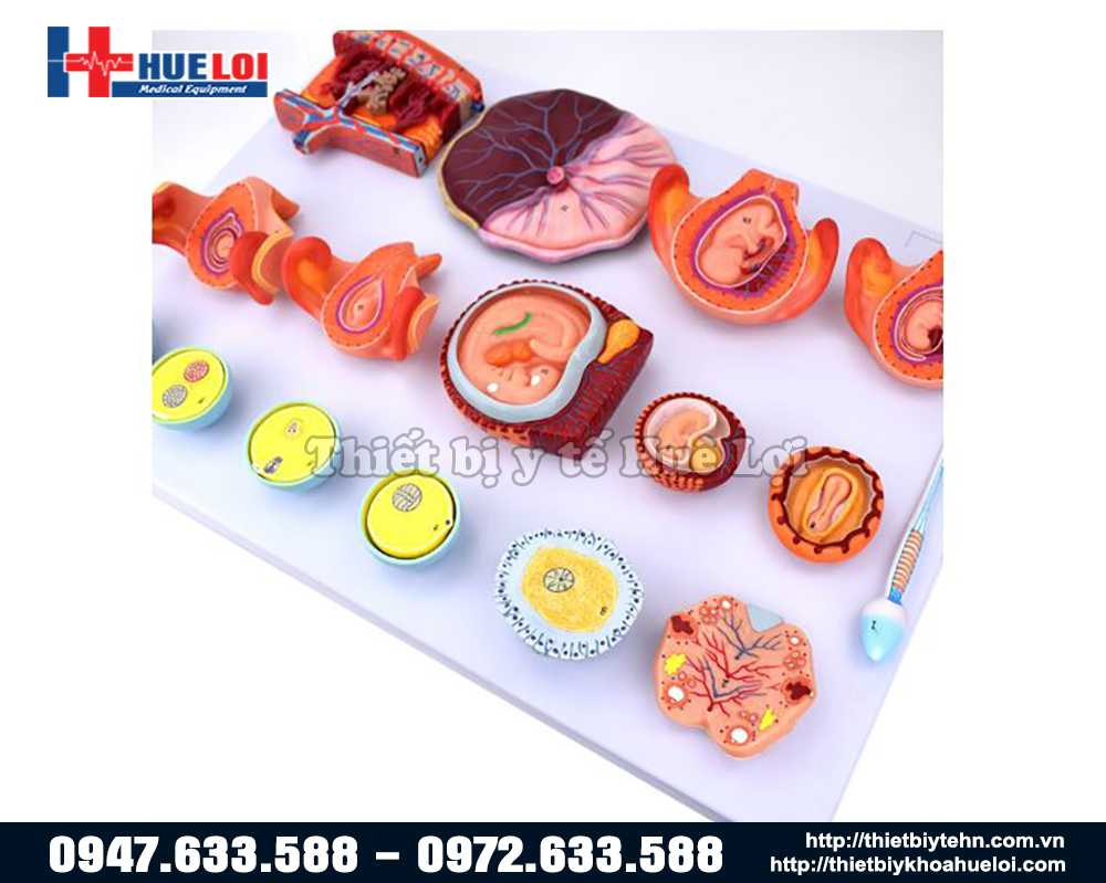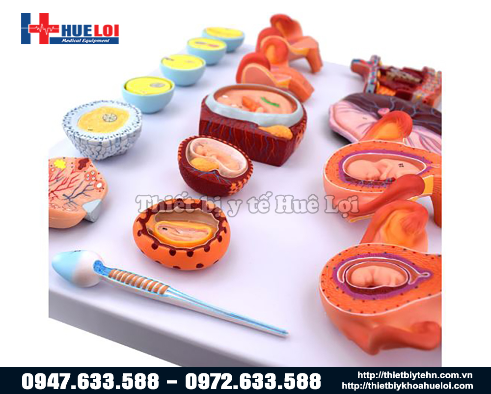 Mô hình sự hình thành phát triển của thai nhi của chúng tôi thể hiện đầy đủ sự phát triển của thai nhi từ giai đoạn thụ tinh cho đến giai đoạn thai nhi 3 tháng tuổi. Ngoài ra, còn có cấu tạo của tinh trùng, trứng, buồng trứng... rất phù hợp để giảng dạy trong bộ môn Sinh học tại các trường trung học cơ sở cũng như trong chuyên ngành sản - nhi khoa tại các trường cao đẳng, đại học y khoa trên cả nước.