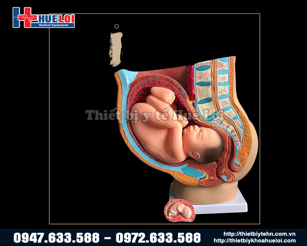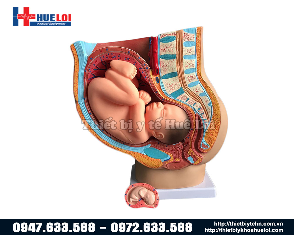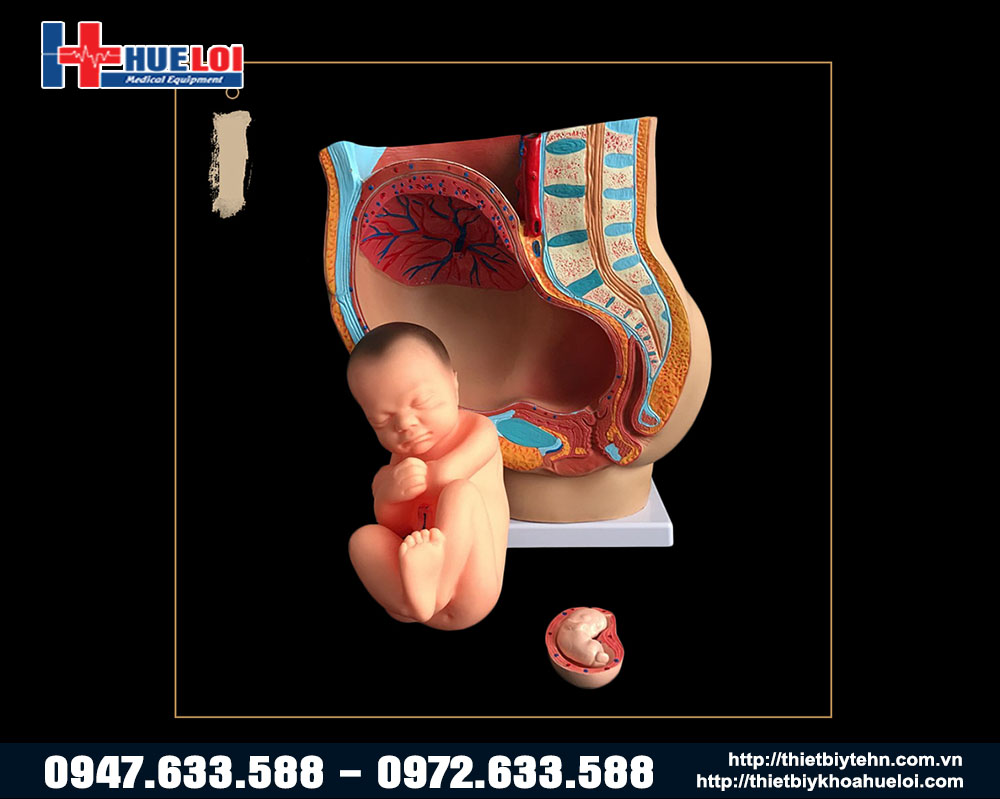 Mô hình thai nhi đủ tháng bao gồm hình ảnh buồng tử cung, các bộ phân giải phẫu liên quan và hình ảnh thai nhi đủ tháng có thể bóc tách.