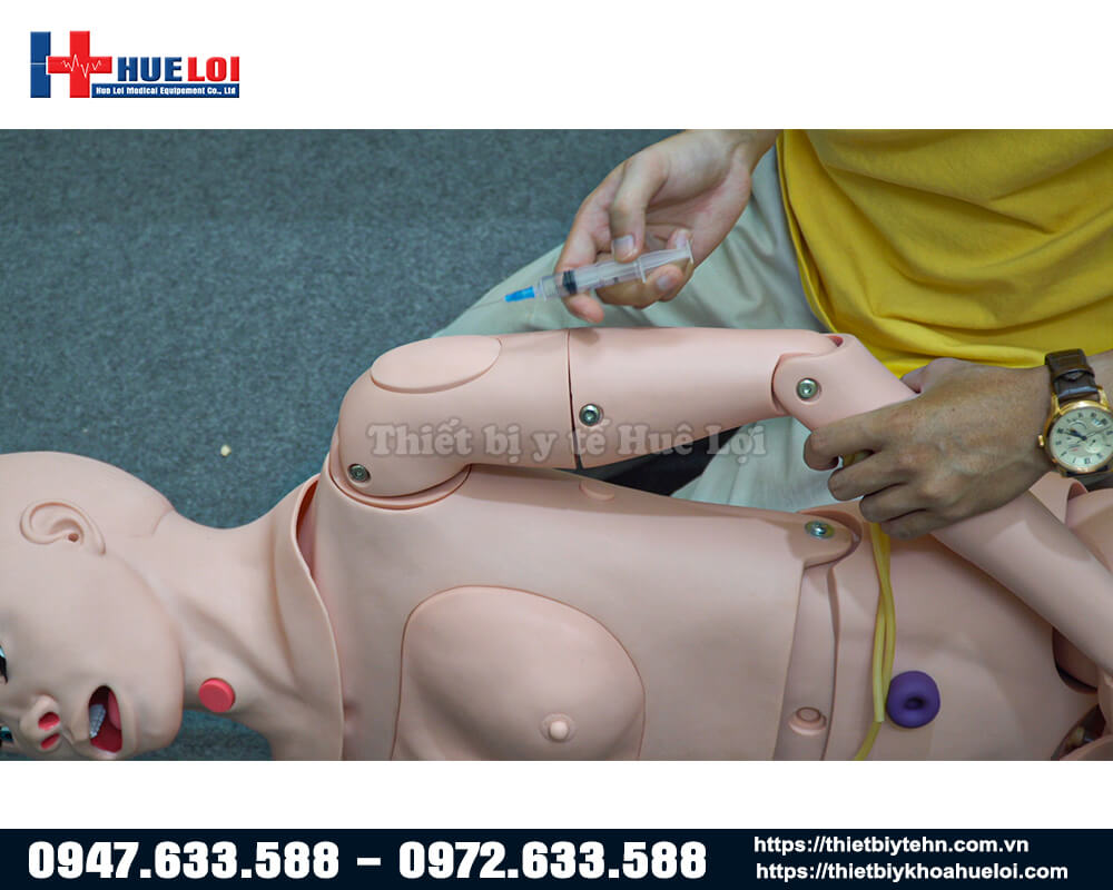 Mô hình thực hành tiêm kết hợp đo huyết áp, quý khách tham khảo thêm tại đây! Cấu tạo của mô hình bao gồm: Cánh tay giả cùng bộ tạo nhịp tim, tạo tiếng huyết áp tâm thu và tâm trương. Ngoài ra, mô hình còn có đường tĩnh mạch giả để người thực hành có thể tiến hành tiêm truyền tĩnh mạch ngay trên bộ mô hình.