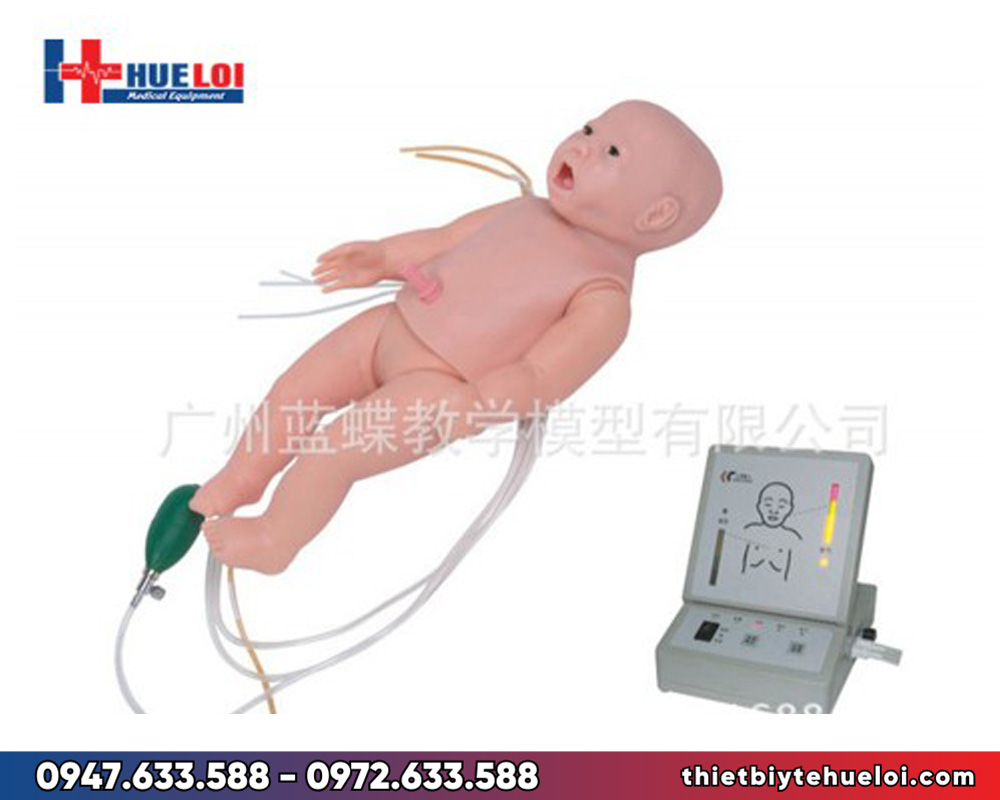 Mô hình trẻ sơ sinh thực tập cấp cứu ngừng tuần hoàn cao cấp có monitor, ngoài ra còn có thể thực tập thêm các kỹ năng khác như đặt sonde dạ dày, cho ăn qua sonde, rửa dạ dày, chăm sóc dây rốn, chăm sóc toàn diện... thích hợp sử dụng trong các trường đại học, cao đẳng y giúp đào tạo những kỹ năng tiền lâm sàng cơ bản cho sinh viên.