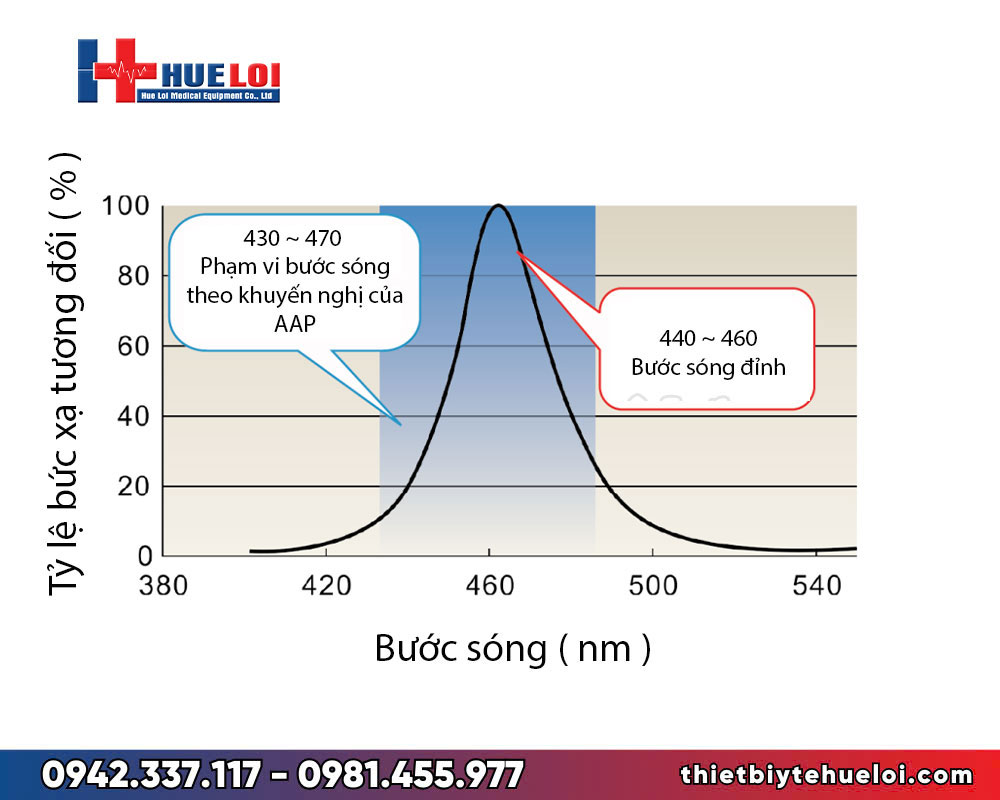 - Đèn LED băng tần thu hẹp không phát ra ánh sáng trong phạm vi tia UV và tia IR, ánh sáng phát ra luôn nằm trong phổ bước sóng ánh sáng ổn định đạt chuẩn khuyến nghị AAP.