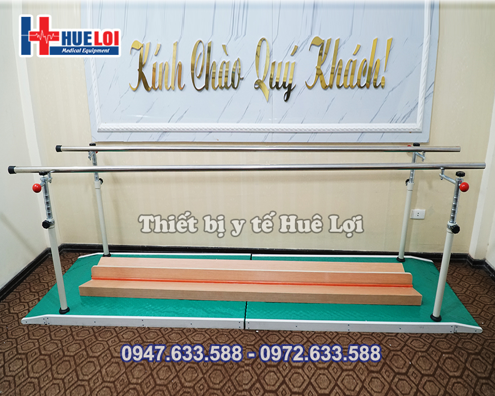 - Chiều cao của 2 thanh song song có thể điều chỉnh để phù hợp với chiều cao của mọi bệnh nhân.