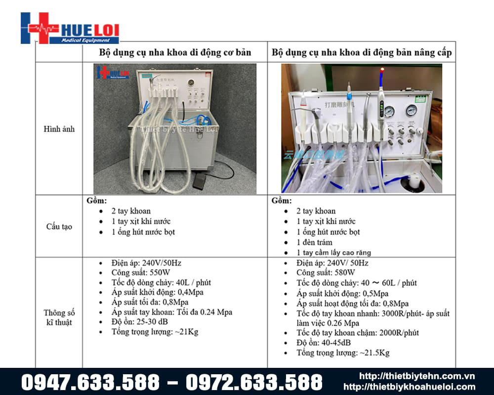 Thiết bị nha khoa di động: thông số kỹ thuật