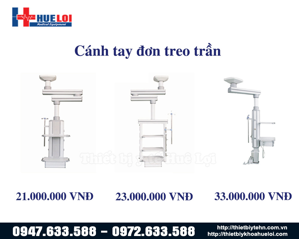 Hiện tại Huê Lợi đang cung cấp 3 loại cánh tay đơn treo trần như sau: