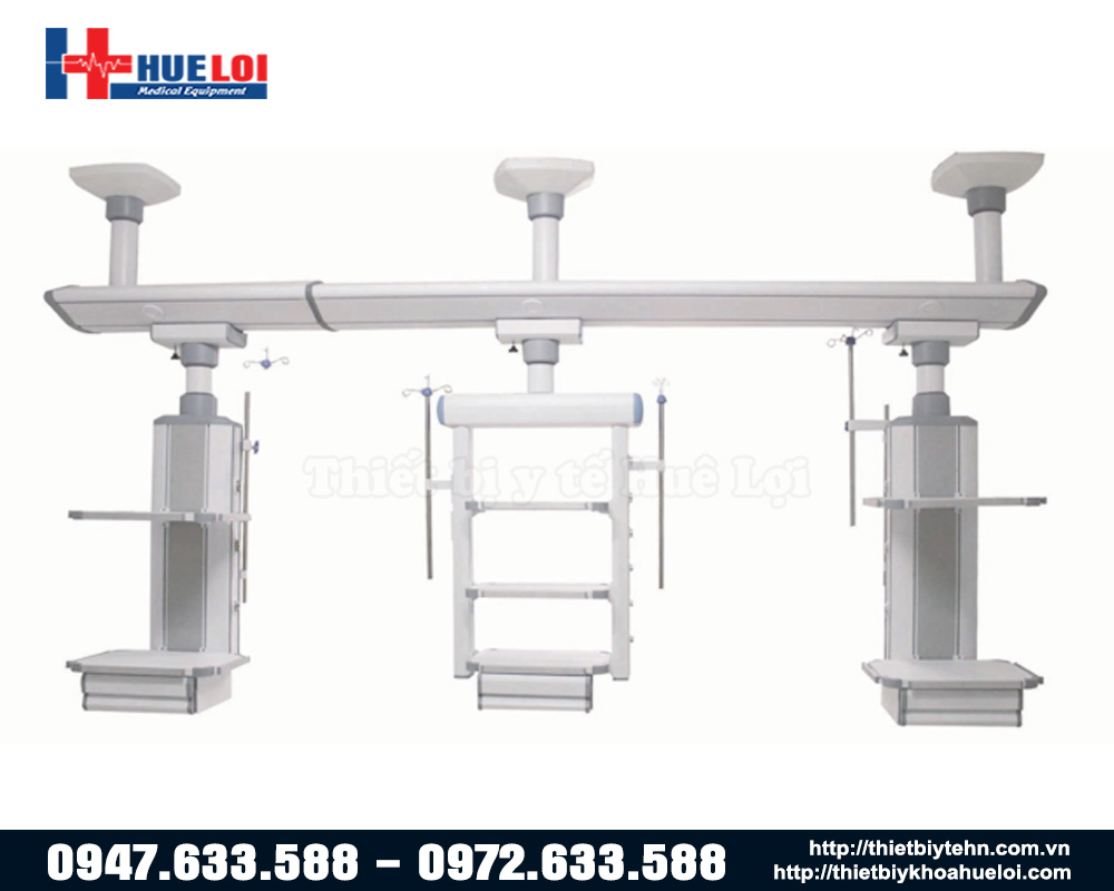 Trụ treo khí 3 nhánh treo trần phòng mổ sử dụng trong phòng mổ, phòng ICU, di chuyển cực kỳ linh hoạt, có lỗ cắm Oxy và lỗ hút áp lực, ngoài ra còn rất nhiều chức năng khác giúp ích cho nhân viên y tế trong những cuộc phẫu thuật hoặc chăm sóc bệnh nhân tại phòng cấp cứu ICU