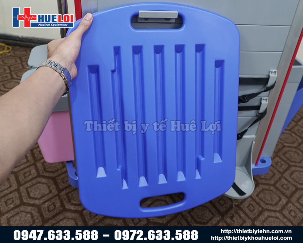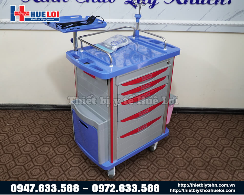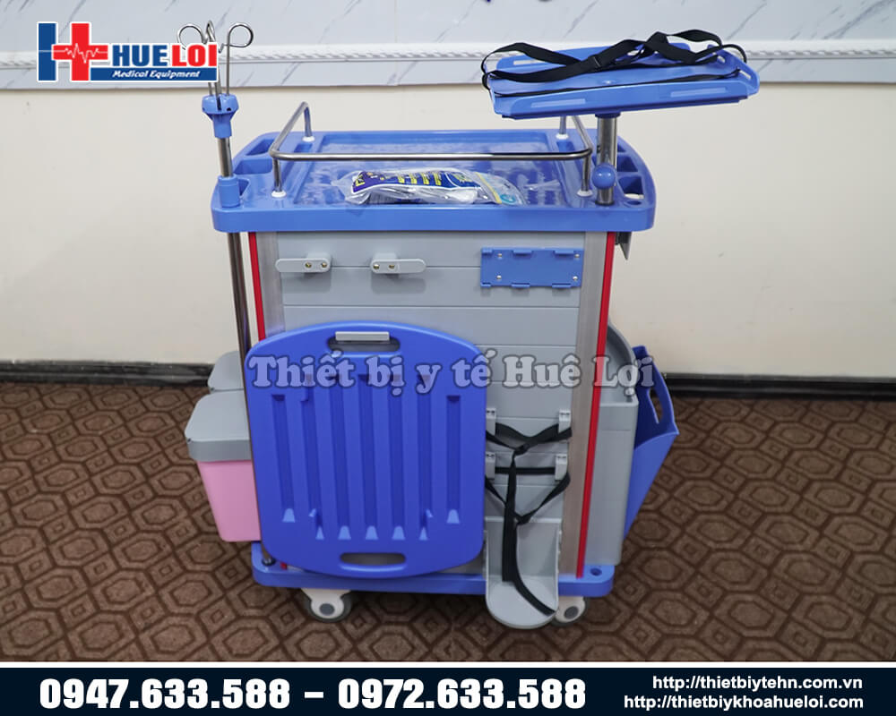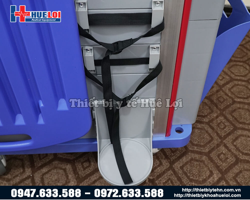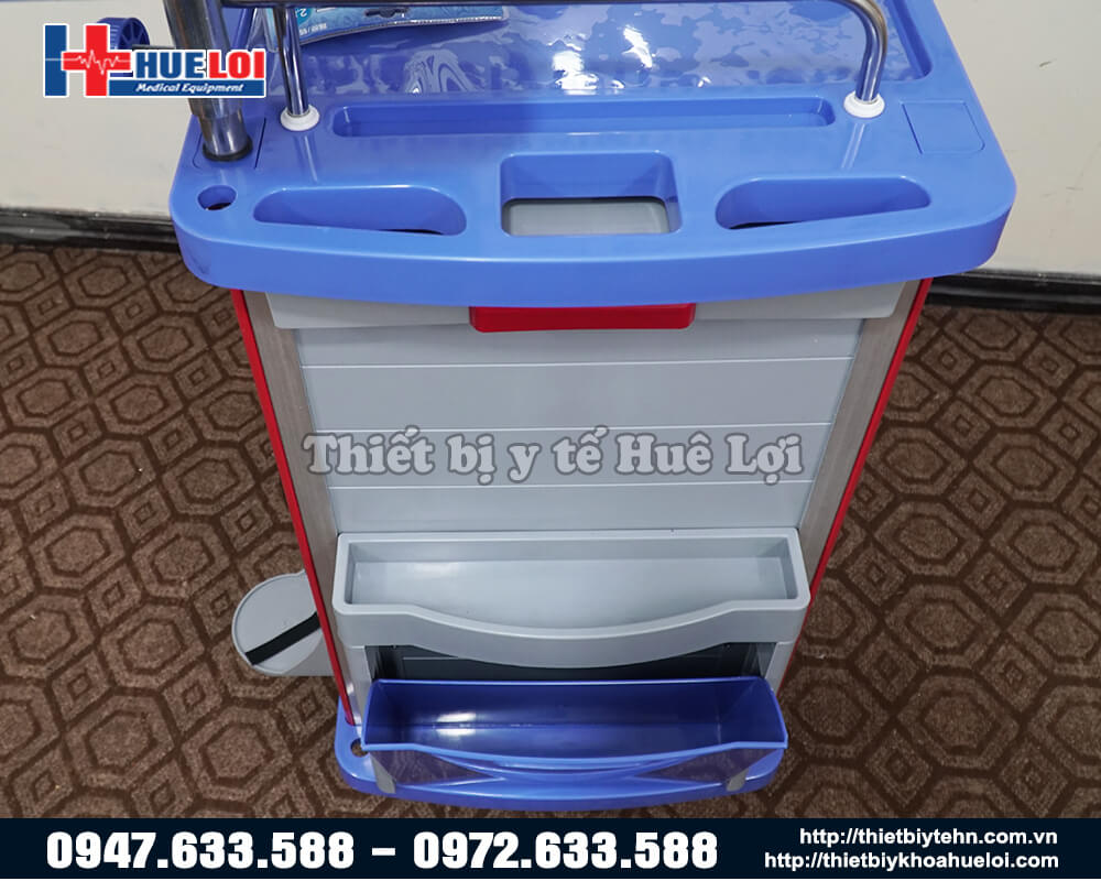 - Phía bên trái của xe có thiết kế thêm 1 ngăn kéo di động để tạo ra thêm không gian làm việc cho bác sỹ và điều dưỡng