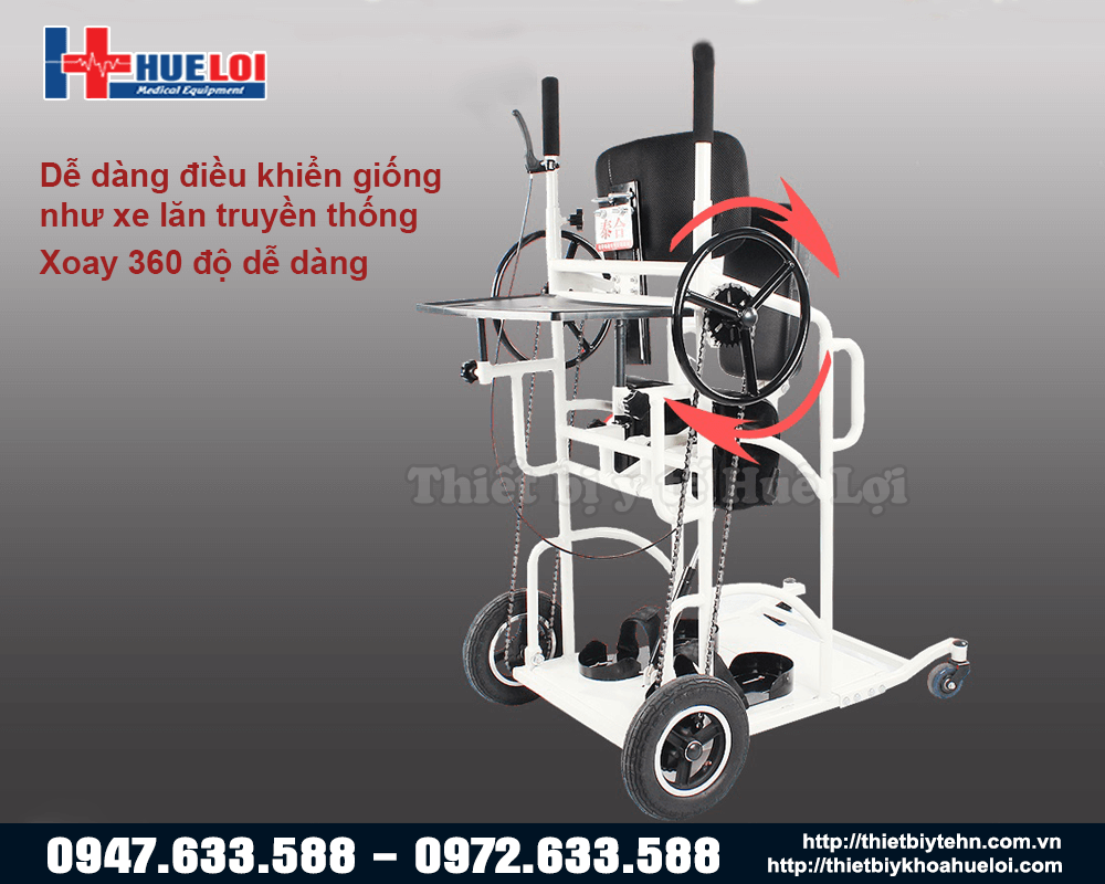 - Bánh xe lăn điều khiển cơ học ngay cả ở dạng xe lăn hoặc xe tập đứng