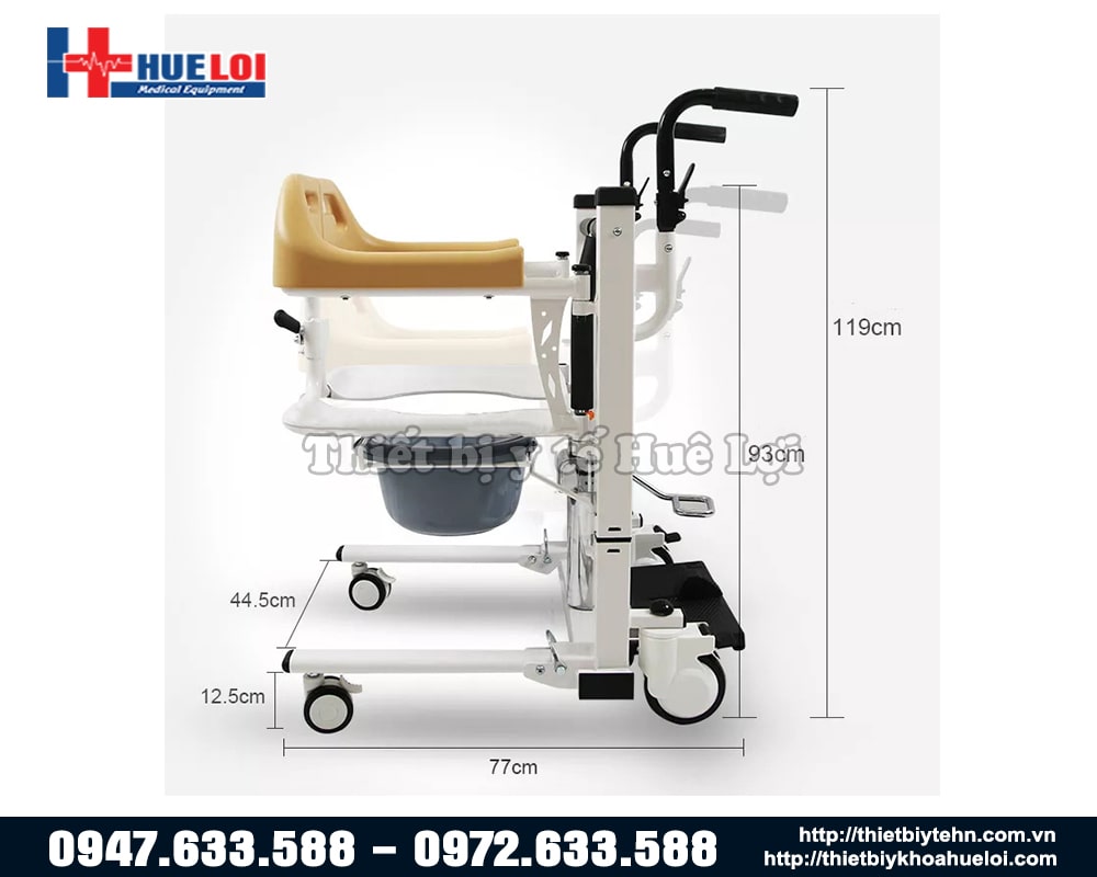 Xe lăn hai cánh nâng hạ bệnh nhân có thể tách rời thành 2, sử dụng piston để nâng hạ bệnh nhân, từ đó giúp bệnh nhân dễ dàng ngồi lên mà không cần bê/vác, chất liệu thép cực dày, nhựa ABS chống nước, có bô vệ sinh, đệm ngồi. Sản phẩm thích hợp cho những bệnh nhân gặp khó khăn trong việc đi lại, giúp người nhà giảm bớt gánh nặng trong việc chăm sóc.